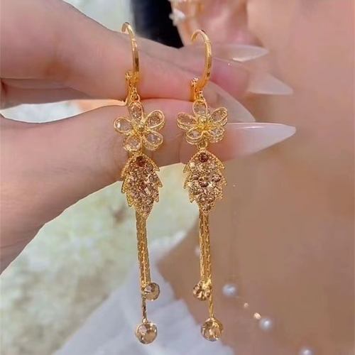 Stylish and exquisite full-diamond zircon flower and leaf tassel earrings, new 2026 design, unique earrings.