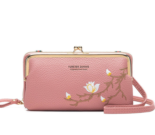 Small Capacity Embroidered Flower Phone Bag, Crossbody Clip, Wallet, Change, Small Women's Bag